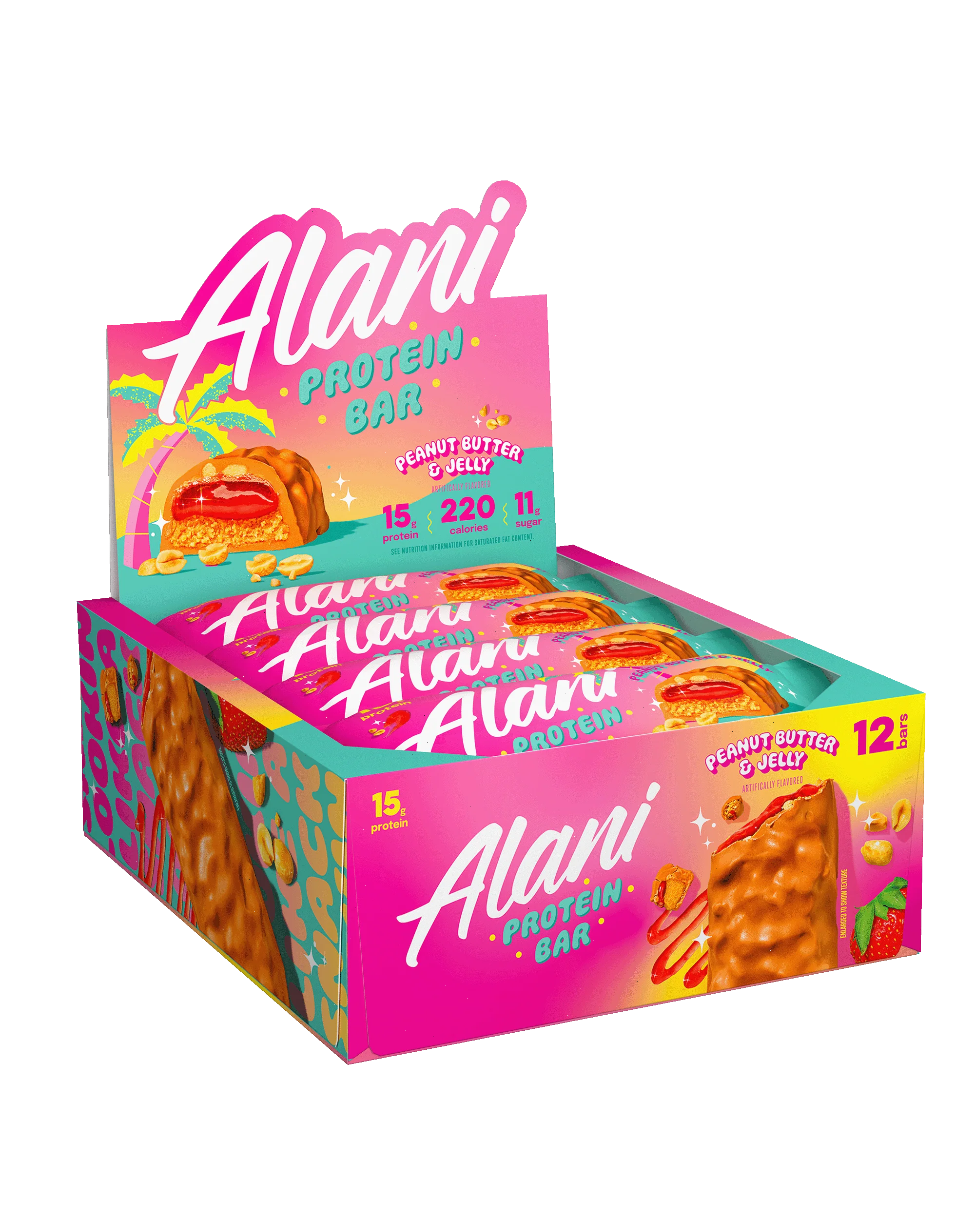 With a strawberry smear and a buttery dip, our Peanut Butter & Jelly Alani Protein Bars are... 17